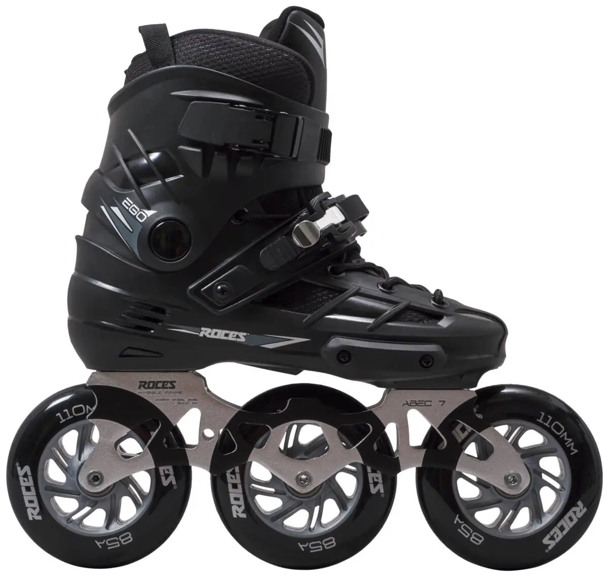 The Roces EGO 3×110 TIF freeskates have a really nice price-to-performance ratio. They are designed for exciting and fast-paced urban freestyle and freeskate action. On these Roces freeskates, you will find a hard boot. So if good power transfer and support are something you are looking for, the hard boot construction will provide you with that. The Roces EGO 3×110 TIF run small in size. We therefore recommend choosing one size up from your regular shoe size. These skates will fit just right if you have slightly narrower feet.