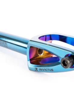 Root Invictus V2 is a well-performing one-piece pro scooter fork that can be used with various wheel diameters between 100mm and 120mm. This scooter fork is compatible with the most common wheel hub width, 24 mm, so you can accommodate most scooter wheels to it in regards to their width. The fork is threadless, which means its steerer tube has a smooth, thread-free outside surface and it needs a threadless headset to function.
