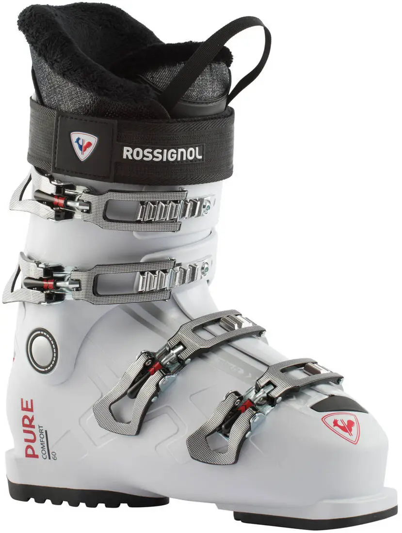 The Rossignol Pure Comfort 60 designed for women are affordable ski boots for beginners. Having a boot with a flex of 60 should be your choice if you would like a comfortable, and forgiving boot that provides a smooth flow in your skiing.