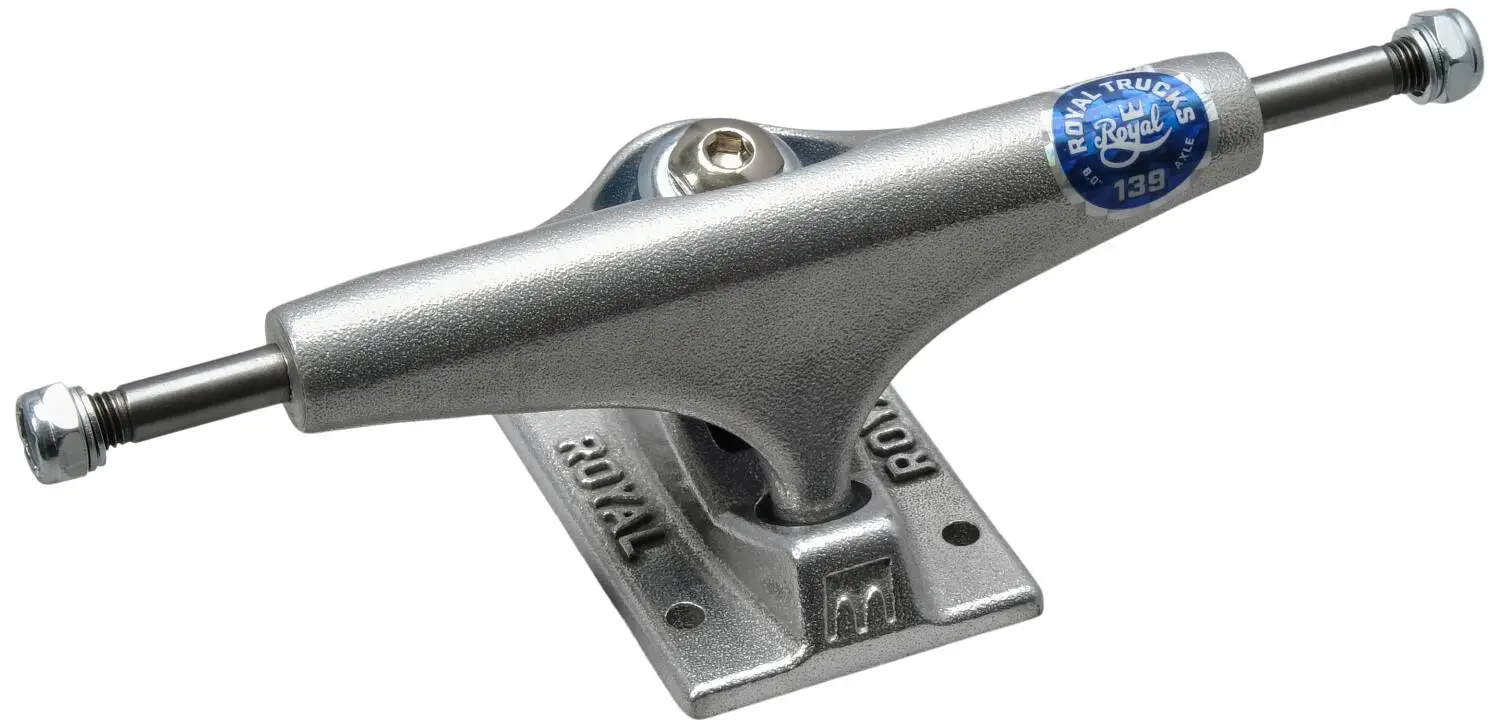 The Royal Inverted is a well-performing truck for skateboards. With this 52 mm mid-height truck you get a great setup for a versatile and all-around skateboarding style. We recommend using wheels with a maximum diameter of 56 mm to lower the risk of wheel bites. Bigger wheels might require the use of riser pads. We recommend that you make sure the axle width of the trucks matches with the width of the deck.