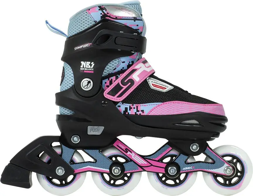 The SFR Pixel inline skates for kids have a really nice price-to-performance ratio. They are size adjustable to last for several seasons, which is perfect for kids with growing feet. On these SFR inline skates, you will find a soft boot. The softer boot construction ensures both a good fit and comfort.