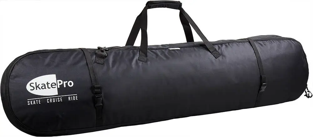 Designed for one snowboard complete with bindings. With boxed ends, a long zipper, shoulder strap, and gear-straps. Protects and keeps track of Snowboard whilst in storage and during transport.