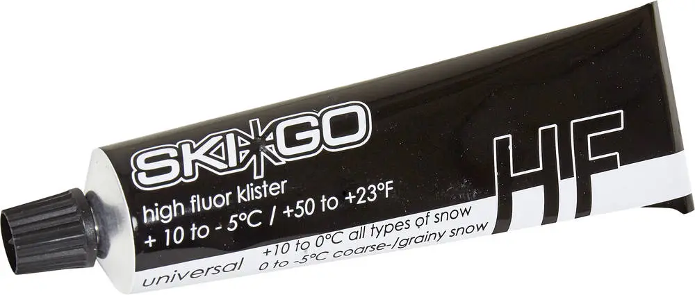 Klister wax is used when the tracks are too slippery for regular kick wax to get a grip on the snow.