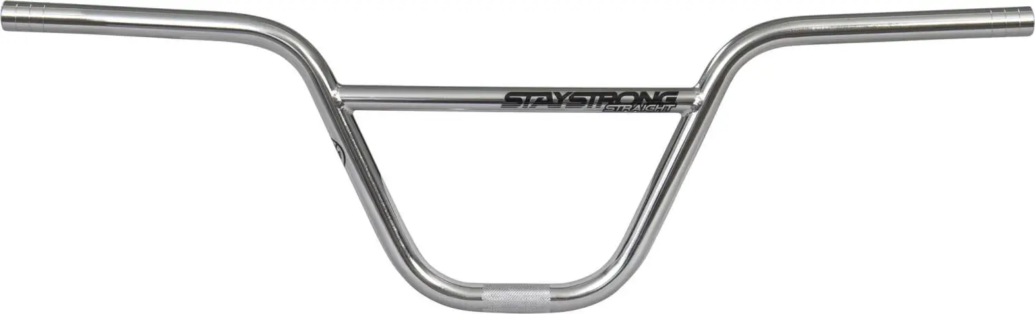 The Stay Strong Straight is a high performance handlebar designed for freestyle BMX bikes. This is a very durable bar that is made out of chromoly steel to achieve a construction that is both very strong and light. A construction with two pieces of tubing gives this Stay Strong handlebar a clean and classic look. Being 29″ (73.7cm) wide, this bar is going to fit the average rider with a shoulder width that measures approximately the same as the bar. The standard 22.2 stem diameter will fit all clamps of the same size. In order to keep it extra durable, the tubing of this handle bar is straight gauged, meaning it has the same thickness throughout the entire construction.