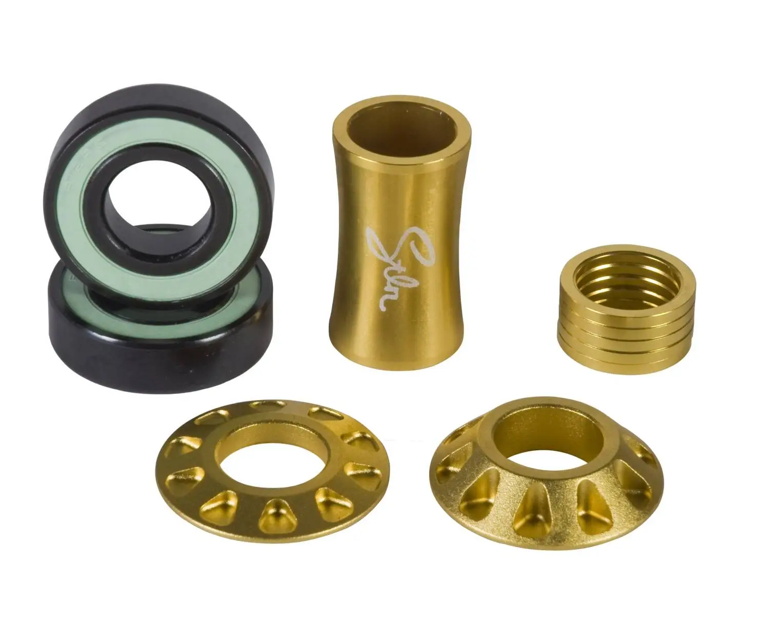 The Revolver Spanish Bottom Bracket by Stolen features a characteristic barrel-a-like design with its bullet-drop slots. It comes with Spanish-sized shells, meaning it’s compatible with frames with a bottom bracket shell diameter of 37 mm.