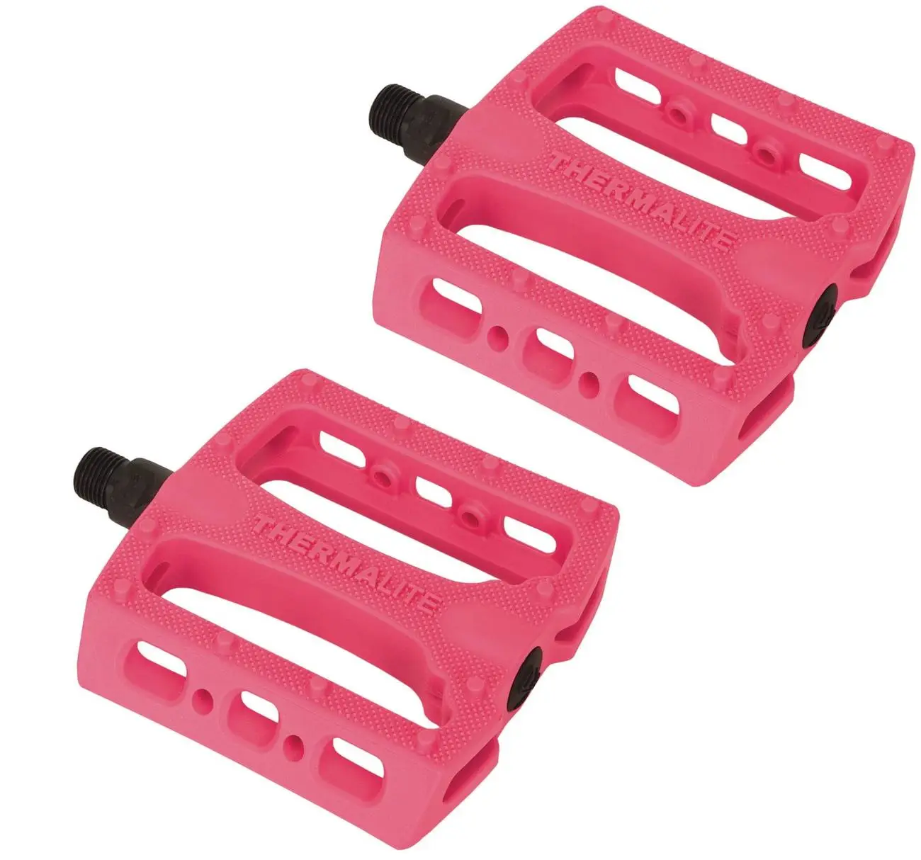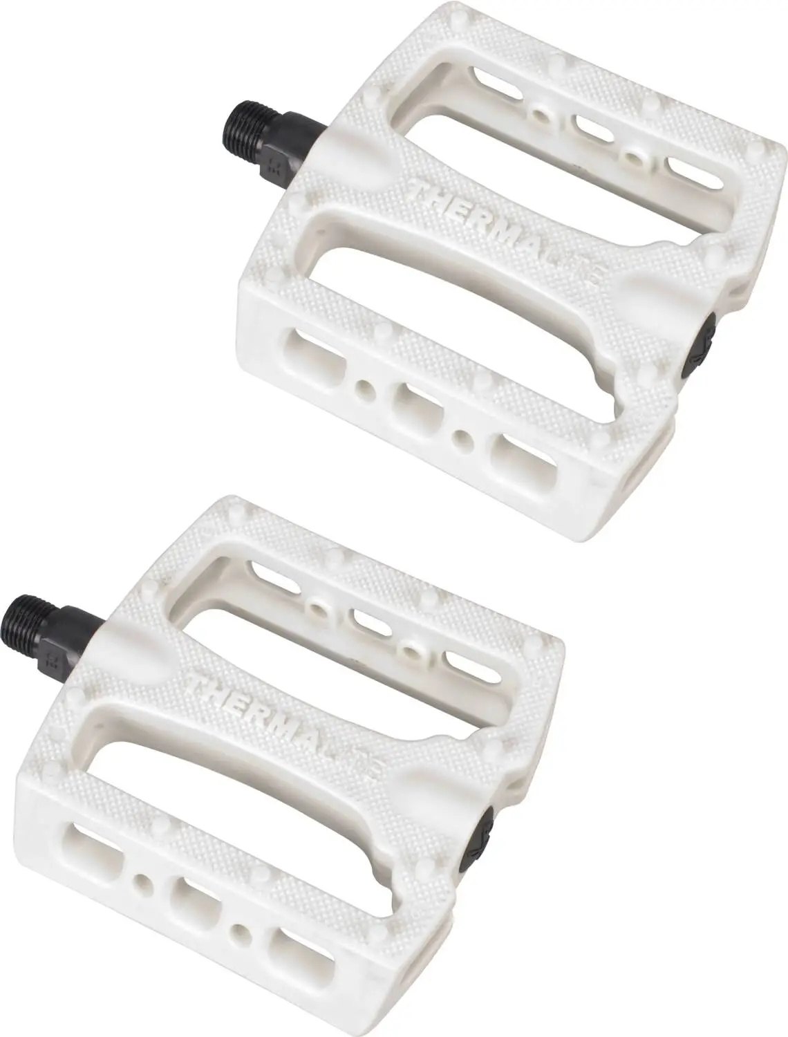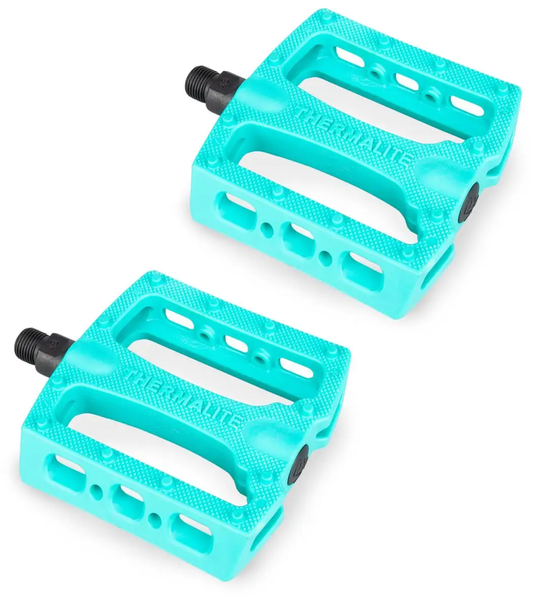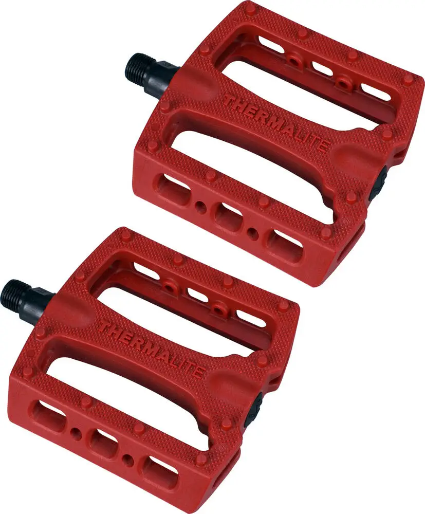 The Thermalite fits on 9/16″ axles and comes with Chromoly spindles. Each pedal has 12 in-molded pins, improving the traction on the surface of the pedals.