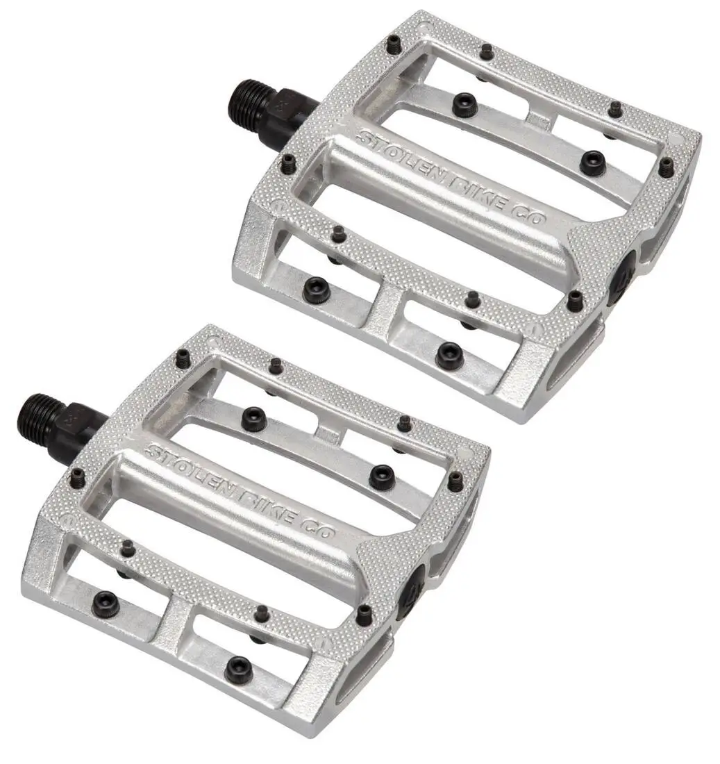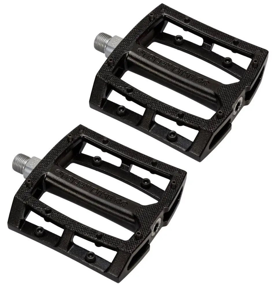 The Stolen Throttle Sealed Auminum are freestyle BMX pedals with an axle diameter of 9/16″, making them compatible with two-piece and three-piece cranksets. They are made from a very durable and dependable alloy. For strength and durability, the spindle is made of chromoly steel, that will not be destroyed easily. Sealed and super smooth bearings that require little maintenance. With large platforms like these, it also becomes easier to catch the pedals after doing tricks that require your feet to leave the pedals.
