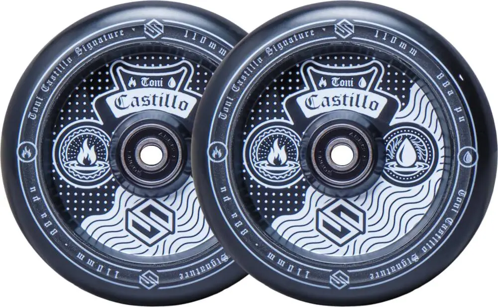 Show of some action-flamboyancy with a set of the killer looking Toni Castillo Signature Pro Scooter wheels by Striker