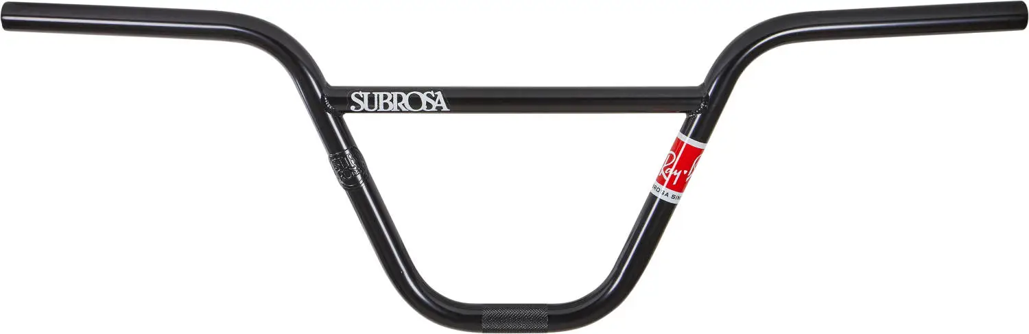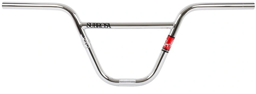Classic 2-piece BMX Handlebar from Subrosa in a Matt Ray Signature Edition. The bar is designed with a traditional 12° backsweep and is 29” wide. Has a Subrosa brazed badge on right side and a red ”Ray” sticker on the left side.