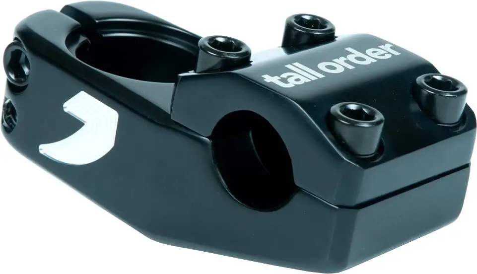 The Logo BMX Stem by Tall Order is a classic top-load stem forged from light and strong 6061-T6 alloy. It comes in a simple black colorway with CNC’d silver logos on each side and a recessed top-cap area for a flush fit and a clean look