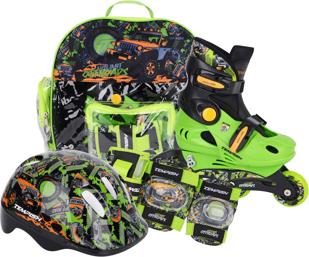 Tempish enables children to get into inline skating in the safest way possible. This complete set brings them a pair of size-adjustable skates, a helmet, elbow- and knee protectors, and also wristguards.