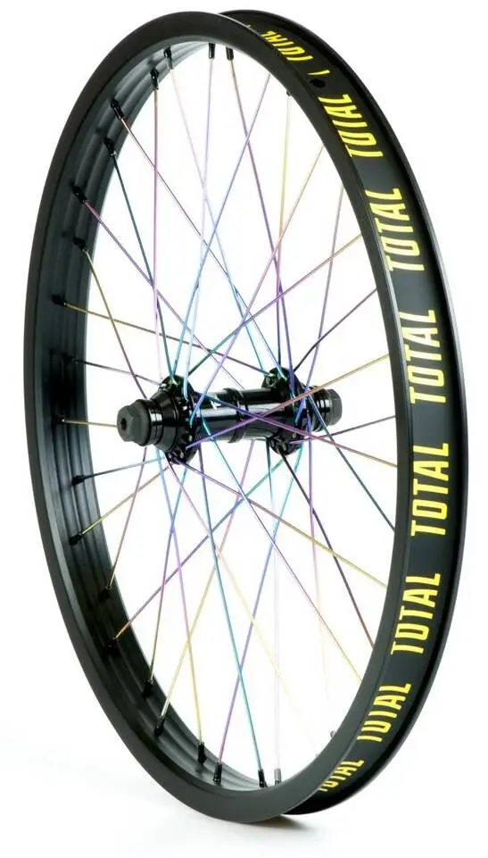 Total BMX Techfire front wheel fits on 20″ BMX bikes. The wheel is designed with a strong Tech V2 sealed hub and Spitfire 6066 Alloy rim. Rim tape included.