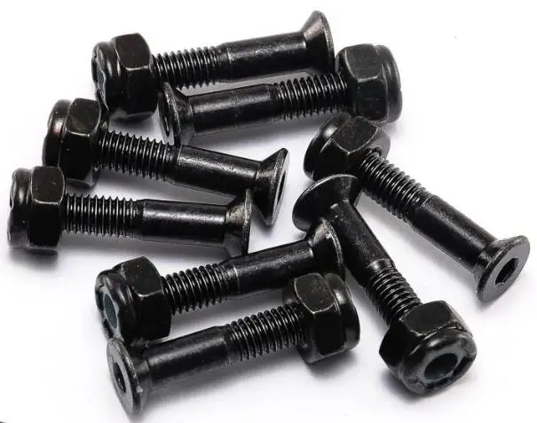 With nylon lock-nuts and a regular Phillips screw head, you will surely find a nice package here to keep your trucks and skateboard deck firmly together.