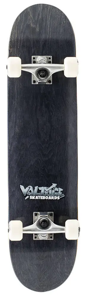 A complete full size Voltage kids skateboard with lightweight trucks and hard 99A wheels for a good combination of speed and grip.