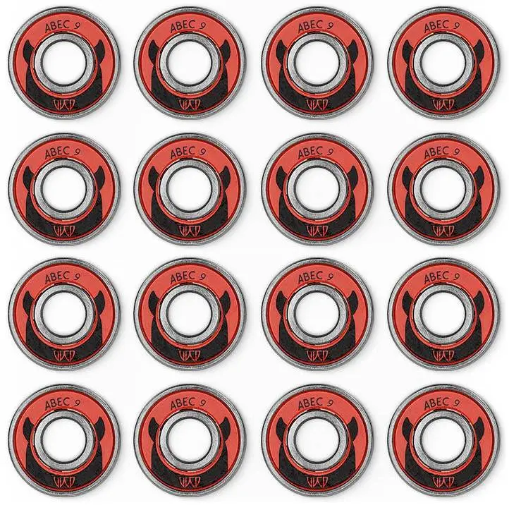 Wicked ABEC bearings with Freespin technology for optimal roll speeds. These ABEC bearings are created with advanced materials and lubricated with Kyodo grease. This makes them ready to use straight out of the box. They have a rubber shield so access for maintenance is easy.